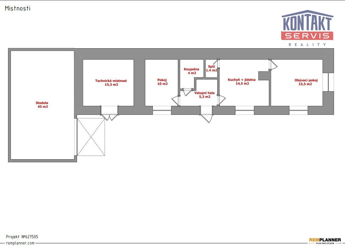 Chalupa samotná nabízí 66 m2 užitné plochy, rozvržené do dvou pokojů, kuchyně, koupelny a technické místnosti. Díky masivní konstrukci z kamene a cihel je dům pevný a stabilní, což poskytuje skvělý základ pro jakoukoliv přestavbu podle vašich představ. K dispozici je také praktický sklep o rozloze 4 m2, ideální pro uskladnění sezónních plodin či jako vinný sklípek. Součástí stavby je prostorná stodola, využívána jako sklad na dřevo a zahradního nářadí.