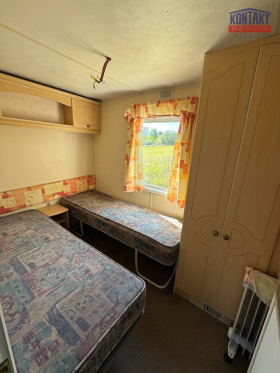 2 ložnice, toaletou a koupelnu se sprchovým koutem. Mobilní dům je