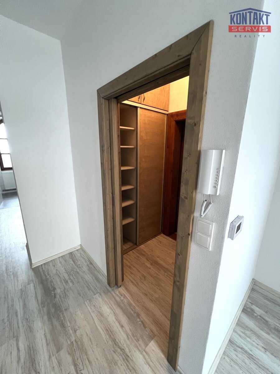Velkým benefitem bytu je prostorná vestavěná skříň ve vstupní chodbě, která poskytuje dostatek prostoru a pomáhá udržet byt vzdušný a prostorný.